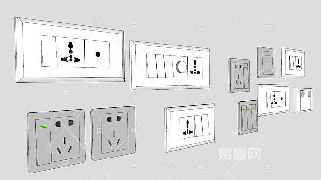 多个开关插座面板SU模型下载_sketchup草图大师SKP模型