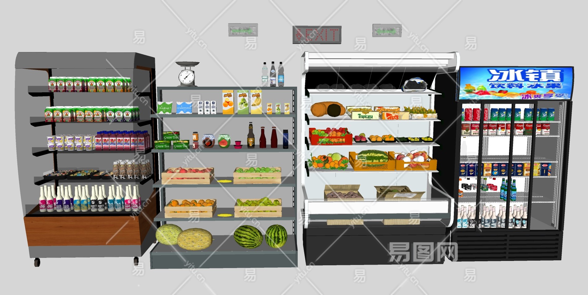 216超市冷饮冷藏保鲜柜水果架果汁矿泉水称重饮料机货架组合su草图模型下载