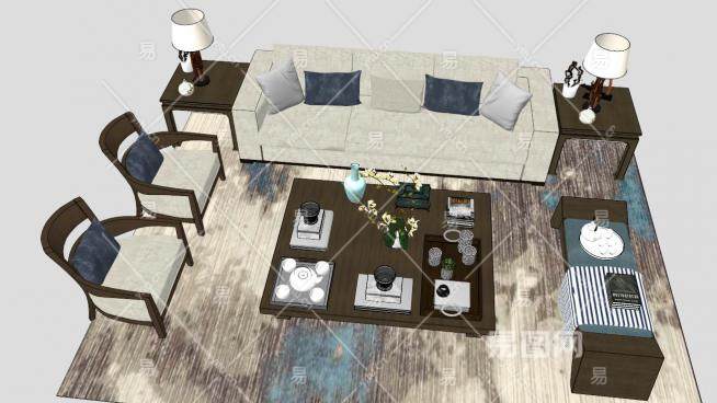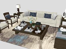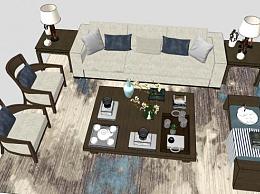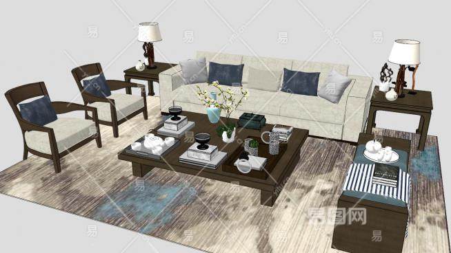 新中式组合沙发SU模型下载_sketchup草图大师SKP模型