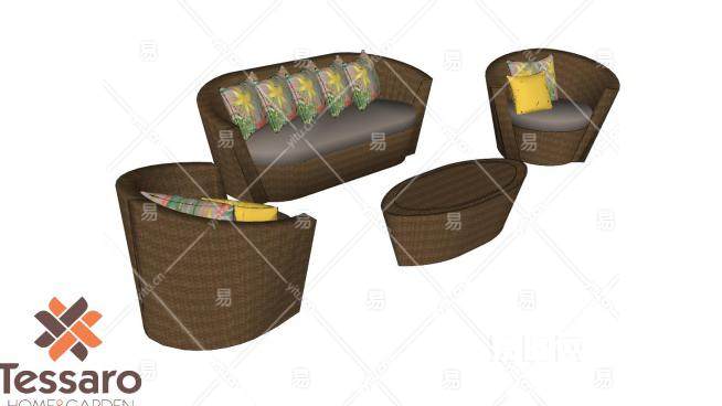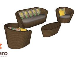 藤椅沙发茶几SU模型下载_sketchup草图大师SKP模型