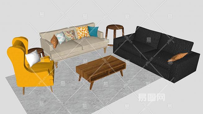 三个沙发家具SU模型下载_sketchup草图大师SKP模型