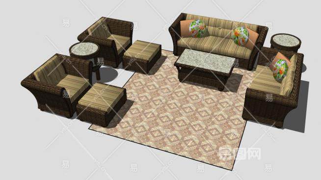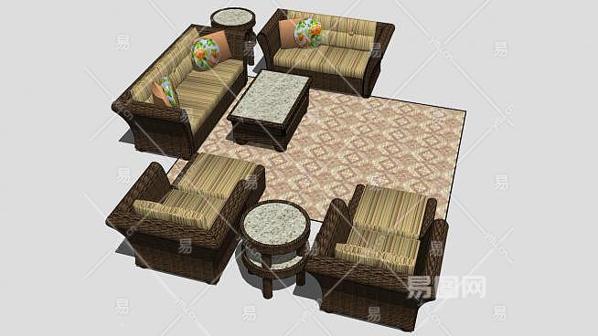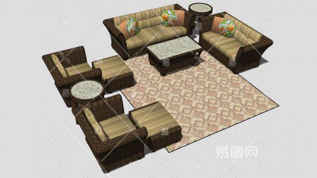 柳条套装家具组合沙发SU模型下载_sketchup草图大师SKP模型