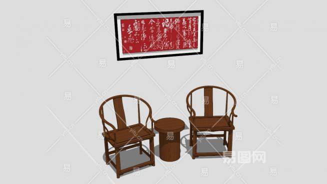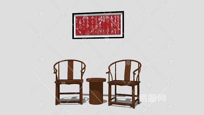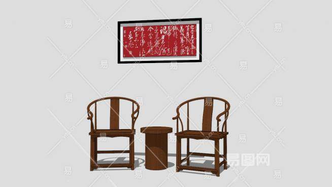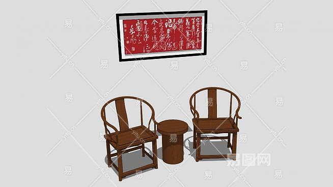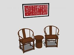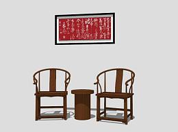 现代新中式单人扶手椅一对sketchup模型下载_sketchup草图大师SKP模型