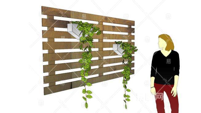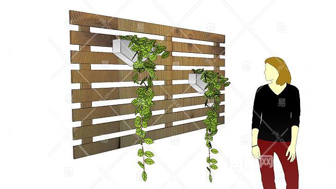 带花盆的木板SU模型下载_sketchup草图大师SKP模型