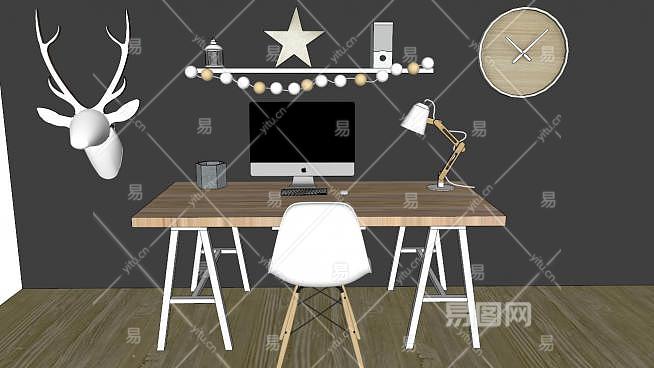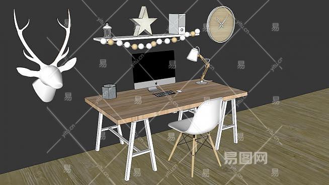 北欧现代简约儿童电脑桌su模型下载_sketchup草图大师SKP模型