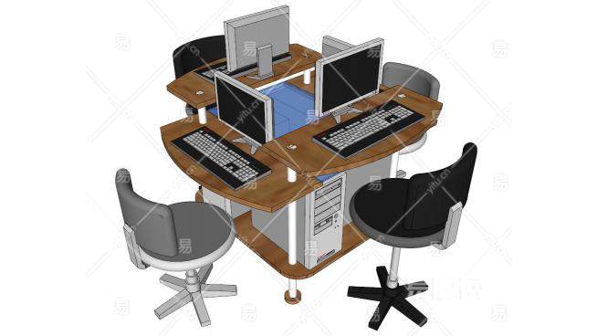 网吧电脑桌su模型下载_sketchup草图大师SKP模型