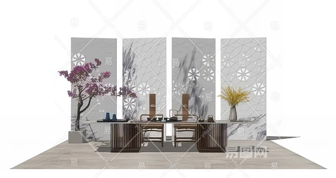 当前的位置:首页 > sketchup > sketchup模型 > 桌几 > 其它桌几 > 新中式茶桌椅茶具树屏风隔断组合