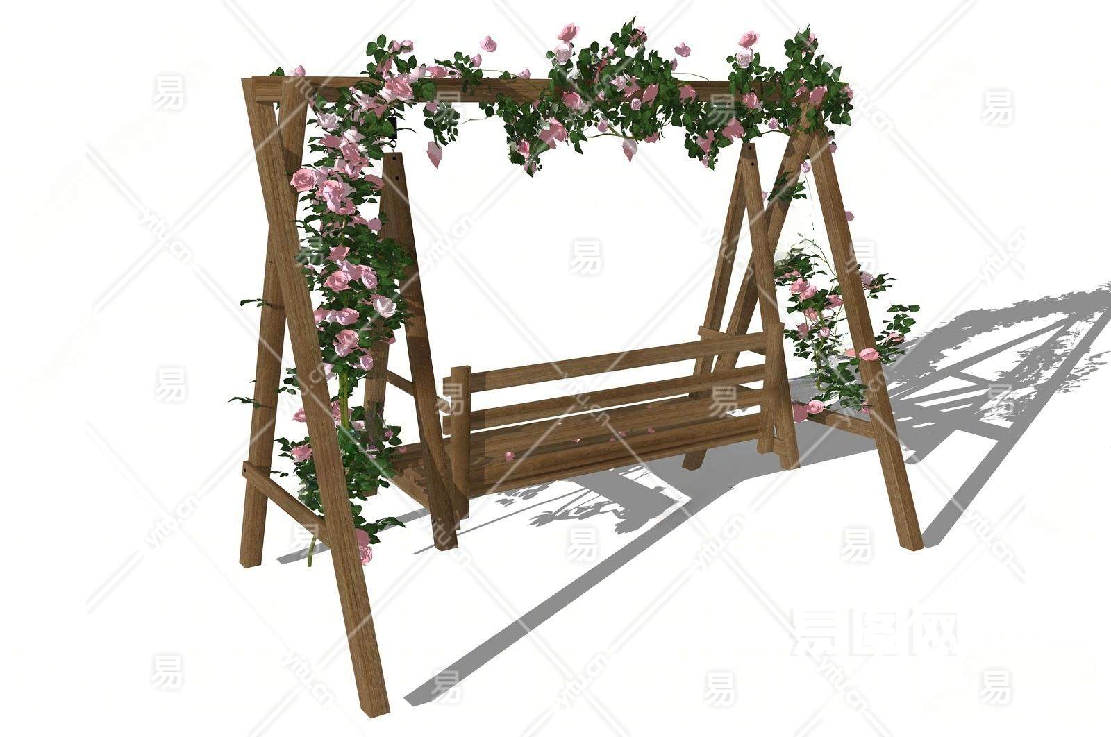 现代风格秋千 户外桌椅 鲜花树藤 木椅