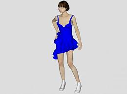 短发短裙女人SU模型下载_sketchup草图大师SKP模型