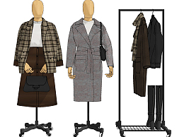 现代服装模特su草图模型下载