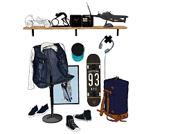26现代儿童房男孩房,服饰旅行包滑板车,耳麦,摆件饰品su草图模型下载