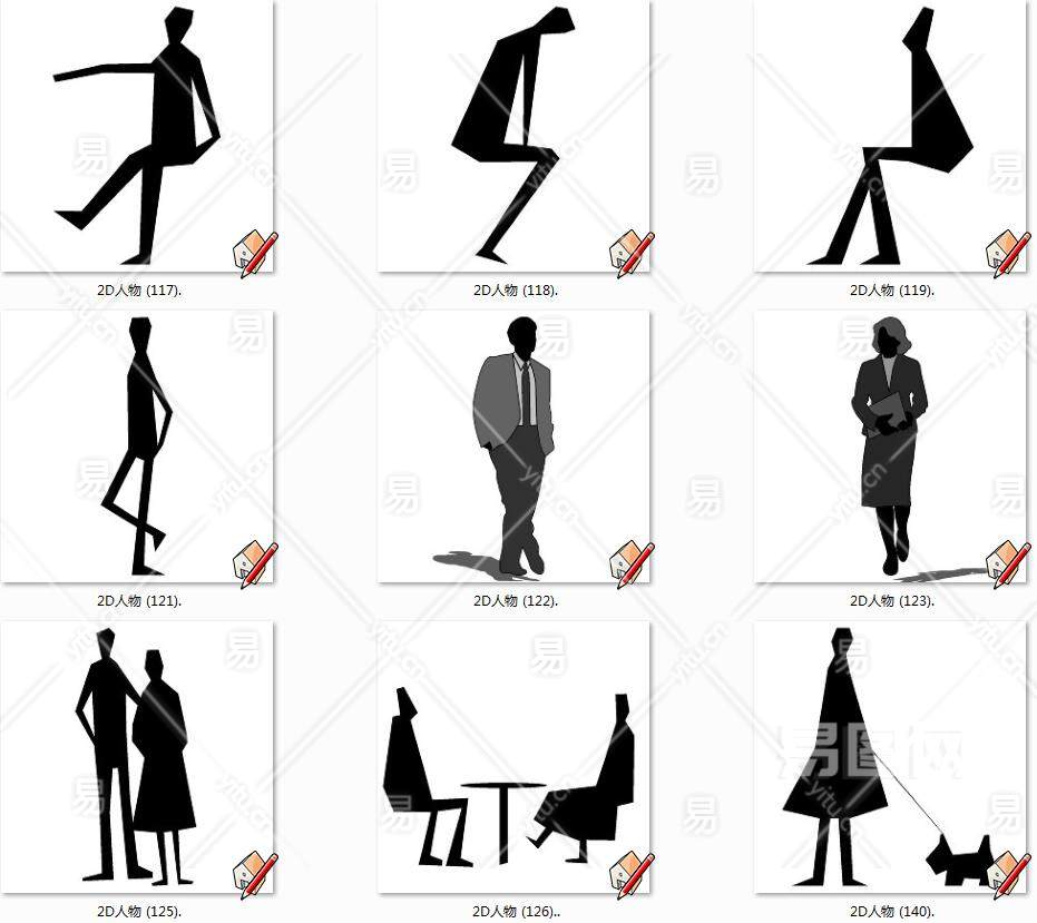 各种人物人群黑白剪影人物SketchUp草图2d人物模型下载su草图模型下载