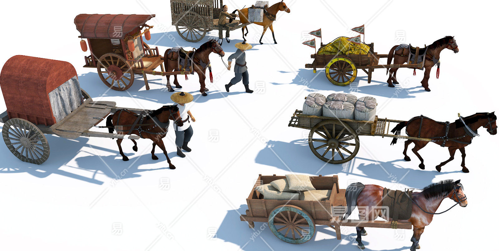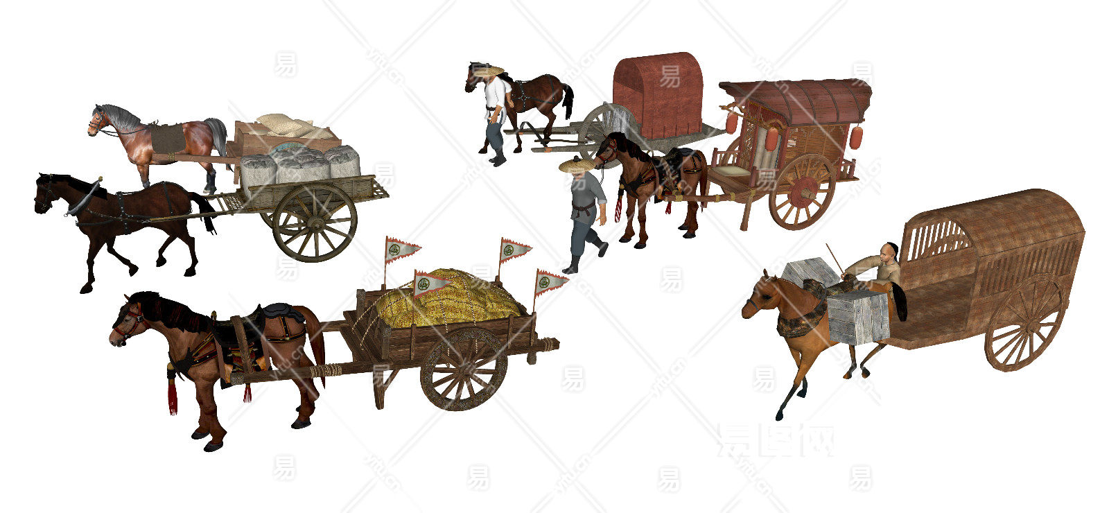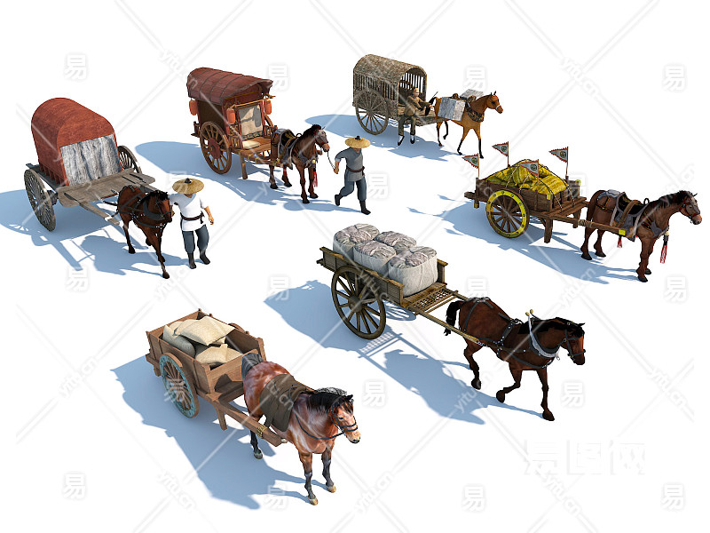 马匹 马车 马夫轿子 古代马拉车 车夫拉货车