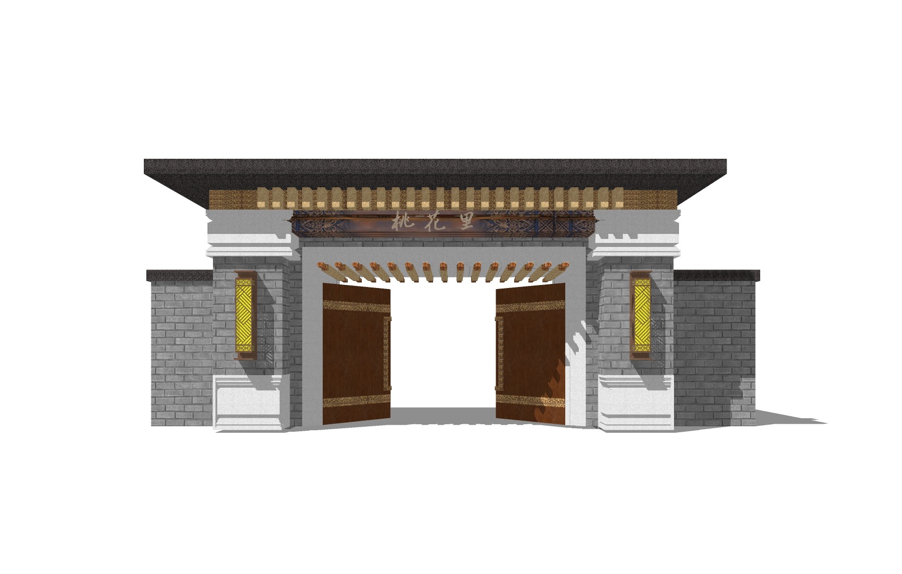 中式大门入口草图大师模型,大门入口sketchup模型免费下载