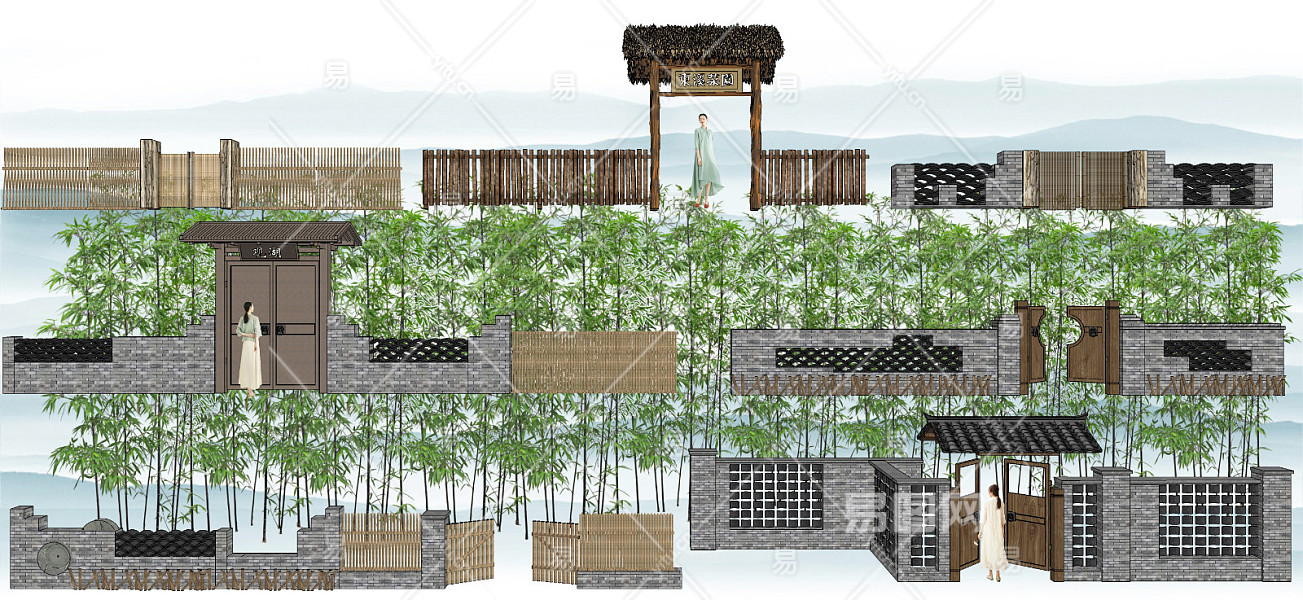 当前的位置:首页 > sketchup > sketchup模型 > 景观小品 > 入口大门 > 新中式乡村改造门头 新农村庭院门 乡村振兴瓦片磨盘景墙 竹篱笆木栅栏围栏栏杆