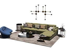 现代风格沙发茶几组合SU模型