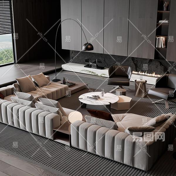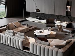 Minotti 现代沙发茶几 转角沙发 圆形茶几落地灯