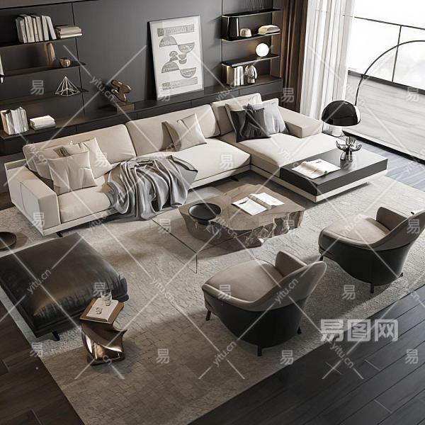 Minotti 现代沙发茶几组合 休闲沙发