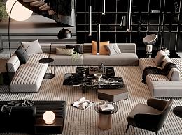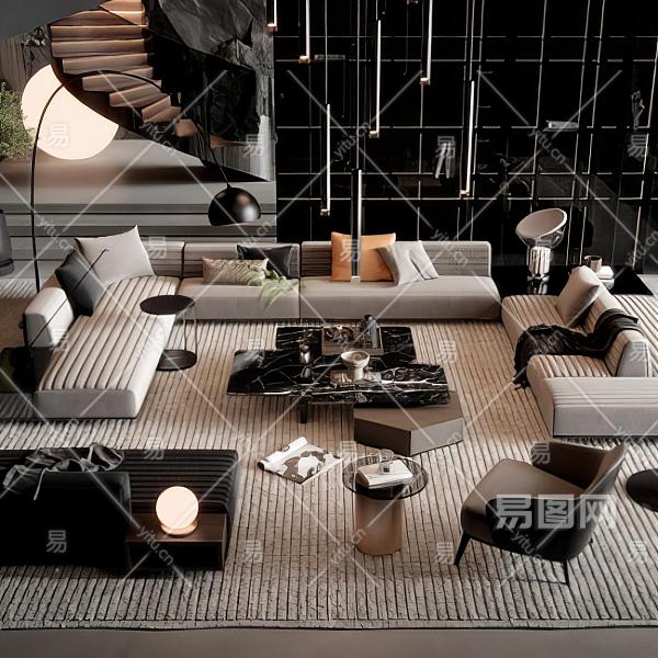 Minotti 米洛提现代沙发茶几组合 转角沙发休闲