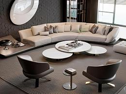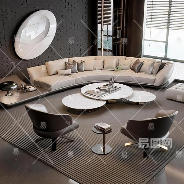 Poliform 现代沙发茶几组合 弧形沙发休闲椅茶几