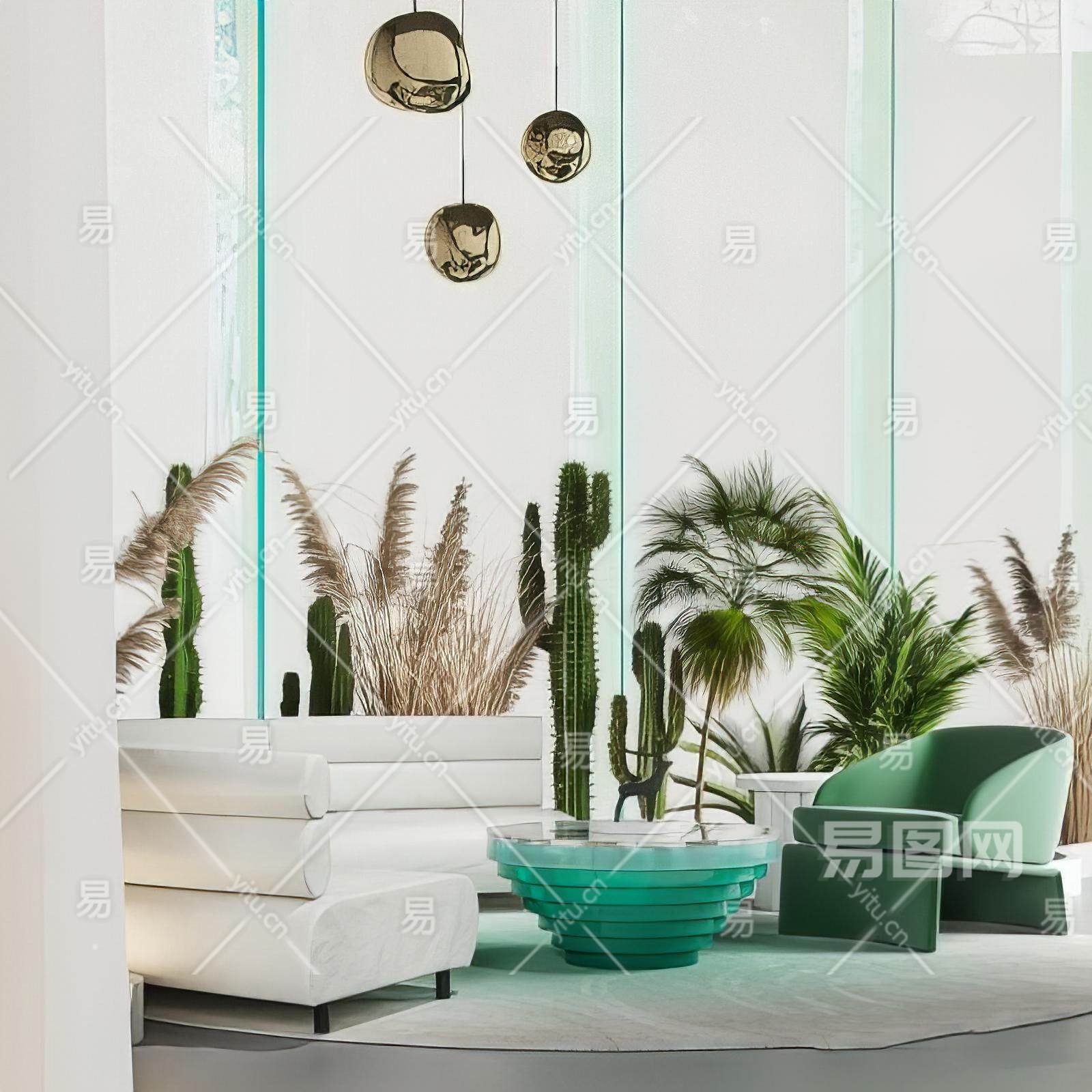 现代售楼处接待区弧形沙发茶几组合 单人休闲沙发绿植