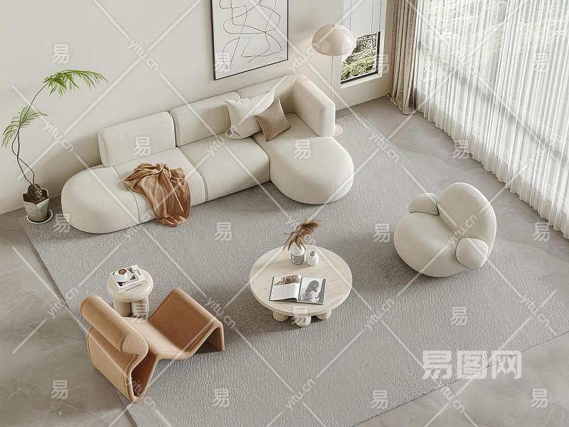 现代奶油风沙发 茶几单人沙发 休闲椅转角沙发组合