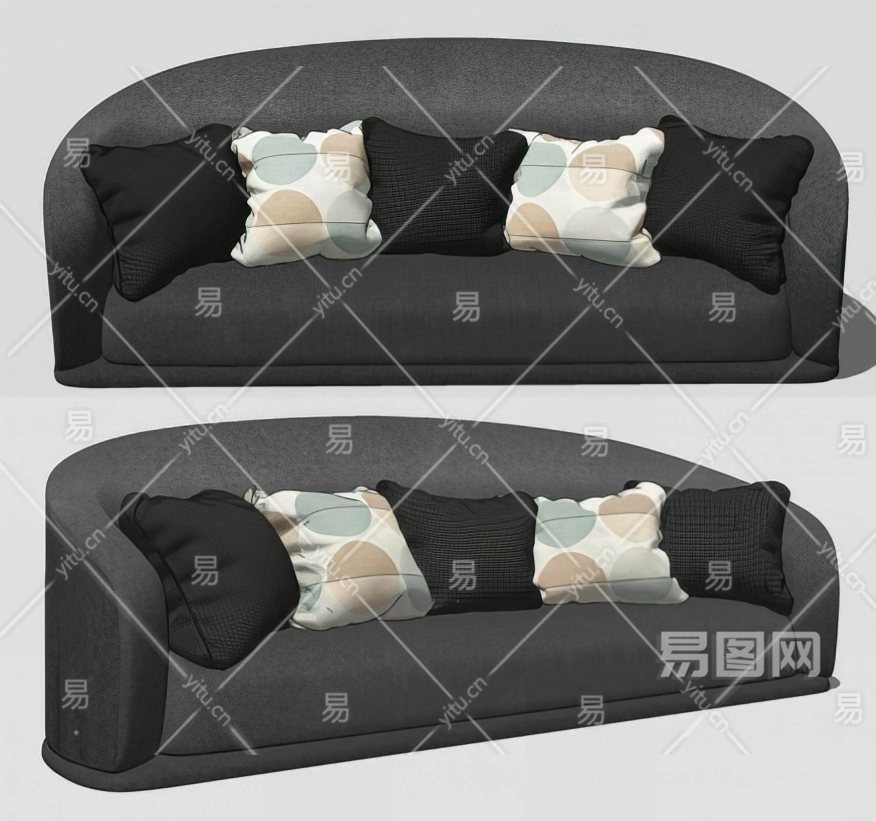 现代布艺多人沙发