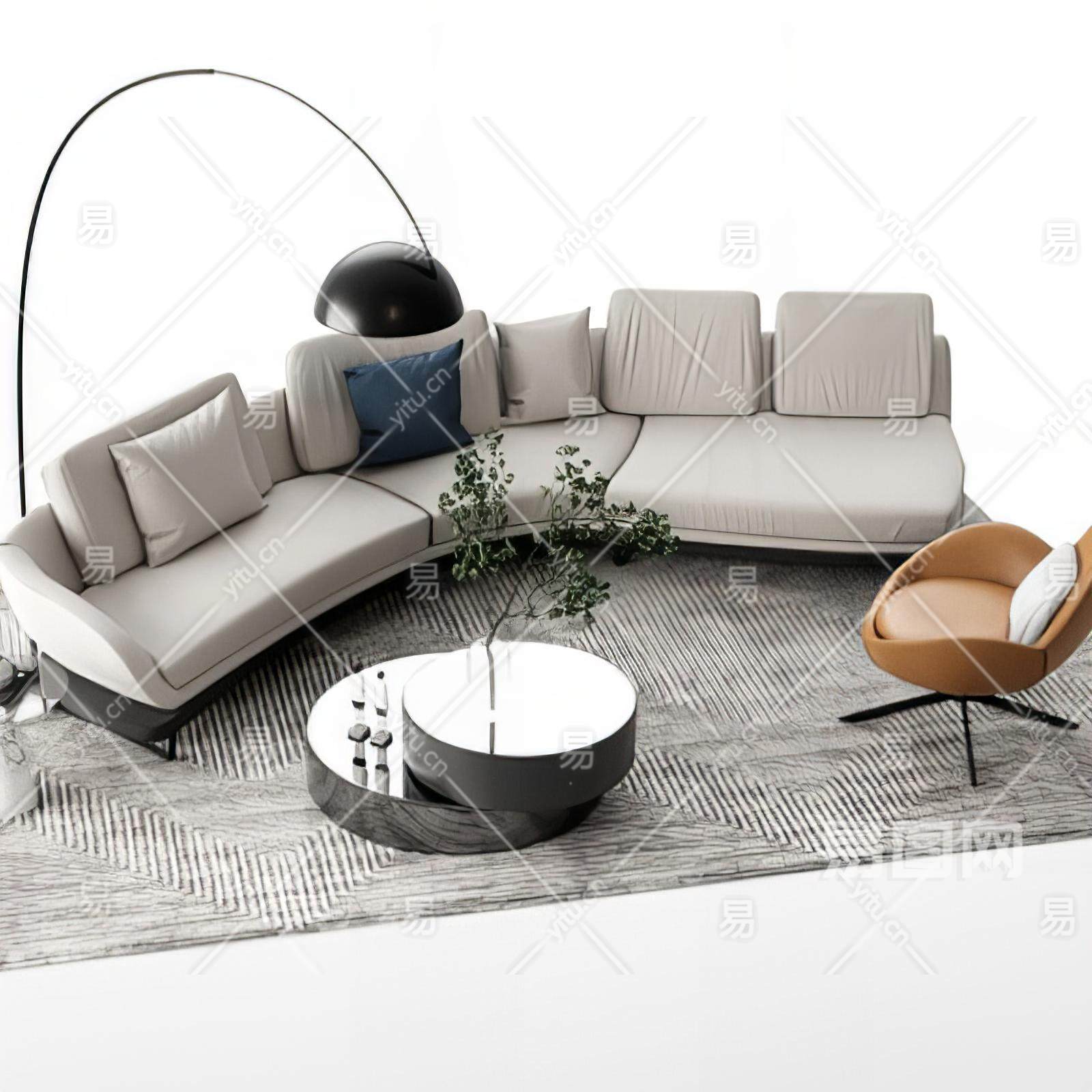 现代沙发组合 弧形沙发休闲椅 圆形茶几