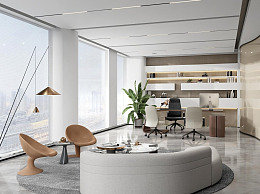 现代办公室 办公桌 沙发茶几组合 植物 雕塑摆件 书桌椅