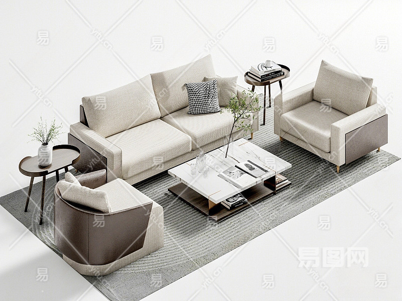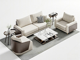 现代沙发茶几组合 轻奢沙发 茶几 地毯 摆设