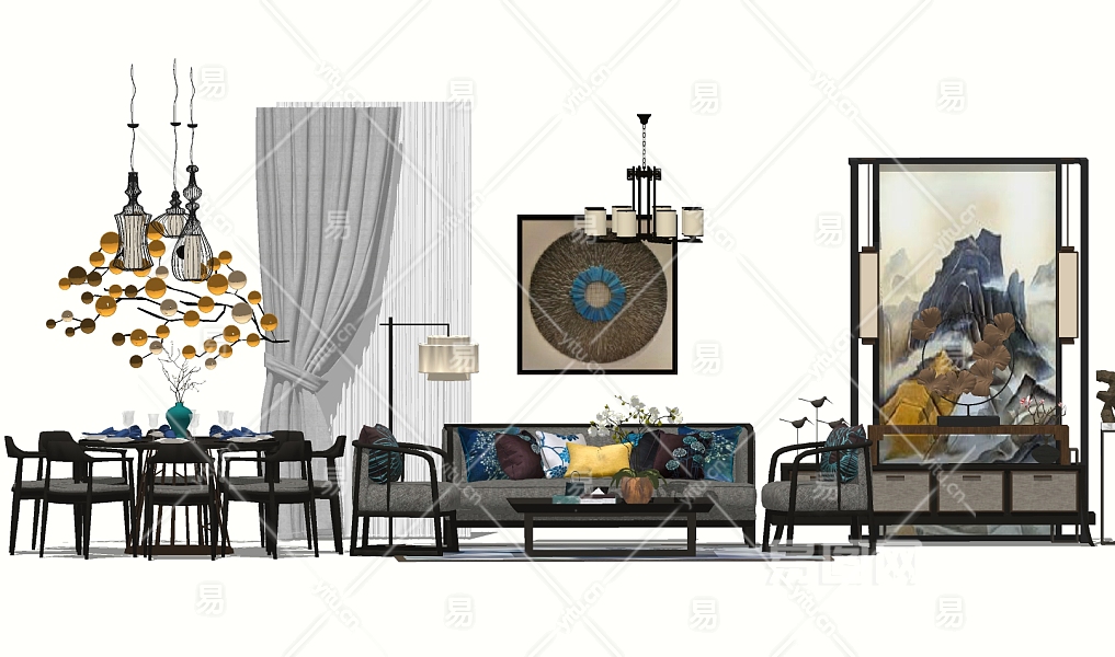当前的位置:首页 > sketchup > sketchup模型 > 沙发 > 沙发茶几组合 > 轻奢新中式客厅组合