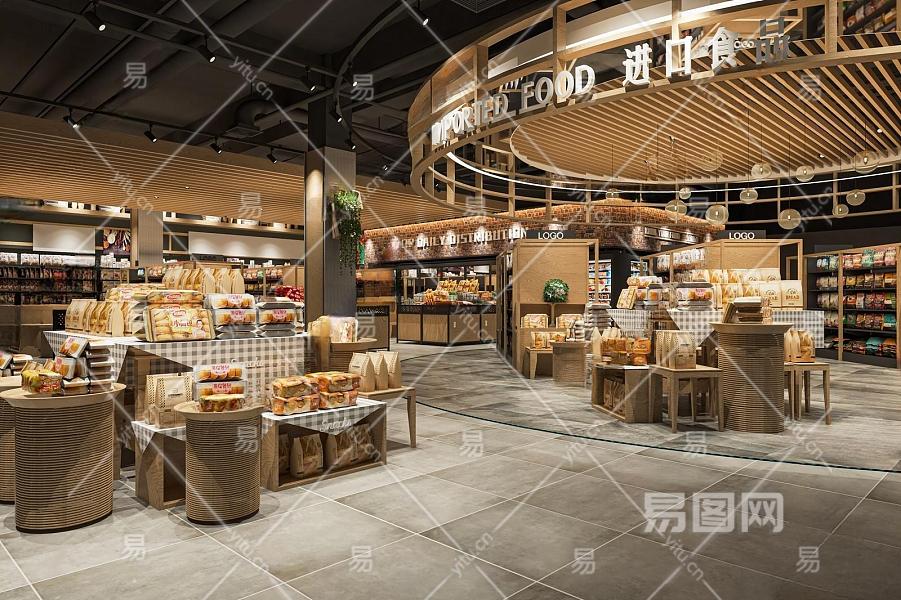 现代超市 食品区 进口食品区 超市货架 展柜 堆头