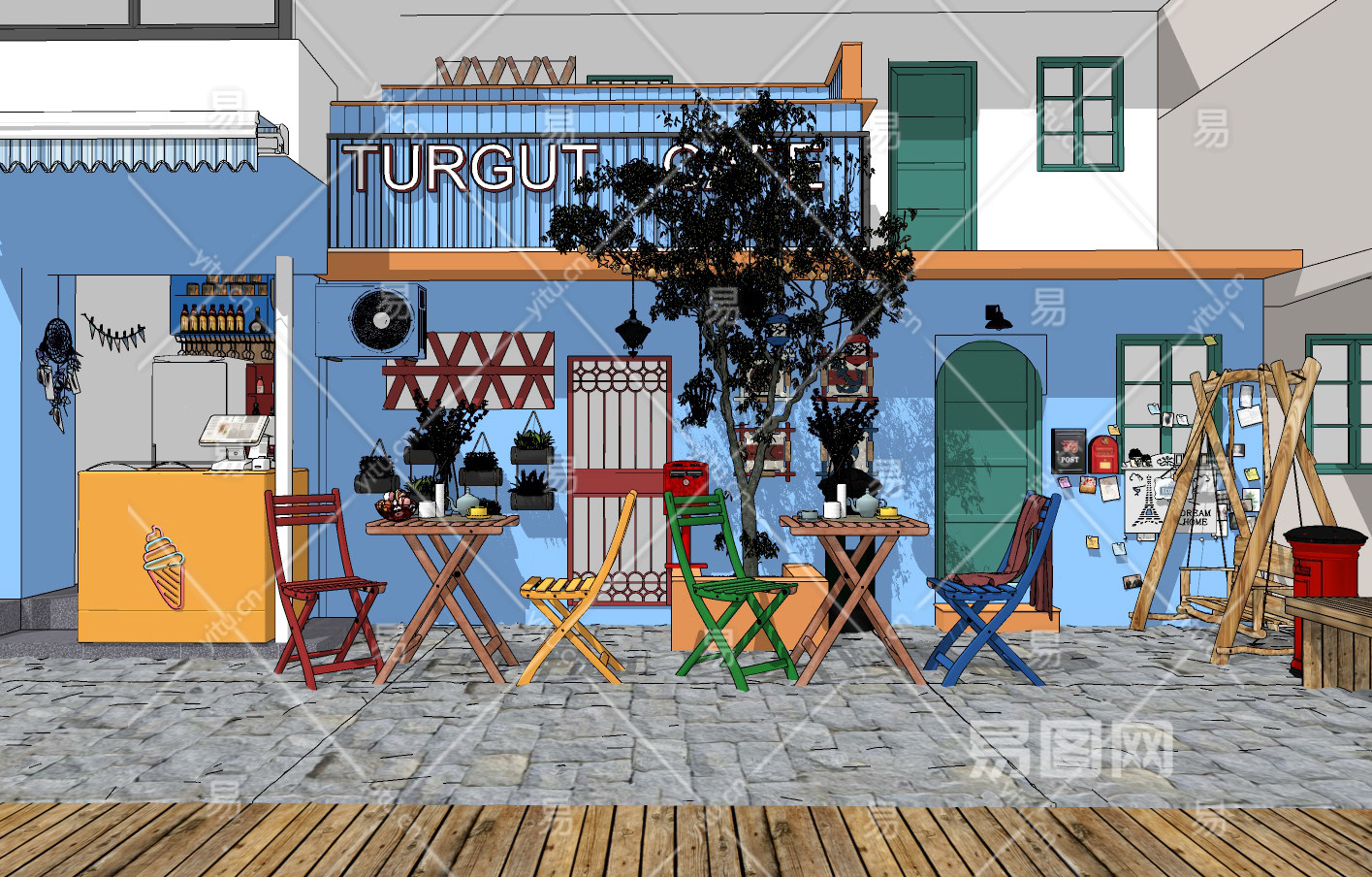 北欧冰淇淋店门面su草图模型下载