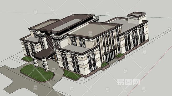 新古典风格售楼处建筑SU模型下载_sketchup草图大师SKP模型