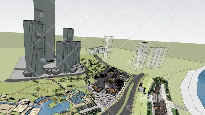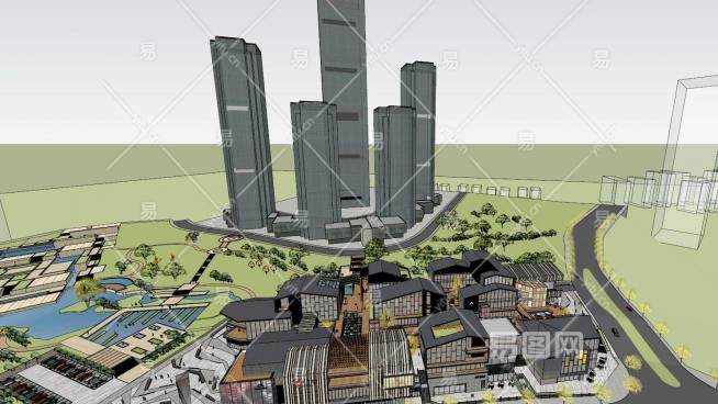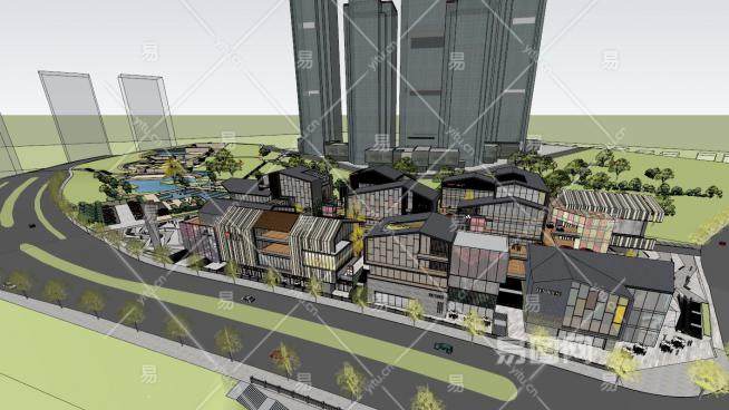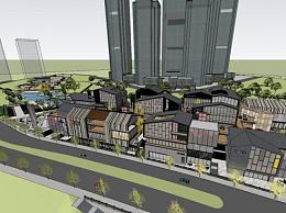 重庆江北嘴绿苑风情商业街建筑SU模型下载_sketchup草图大师SKP模型