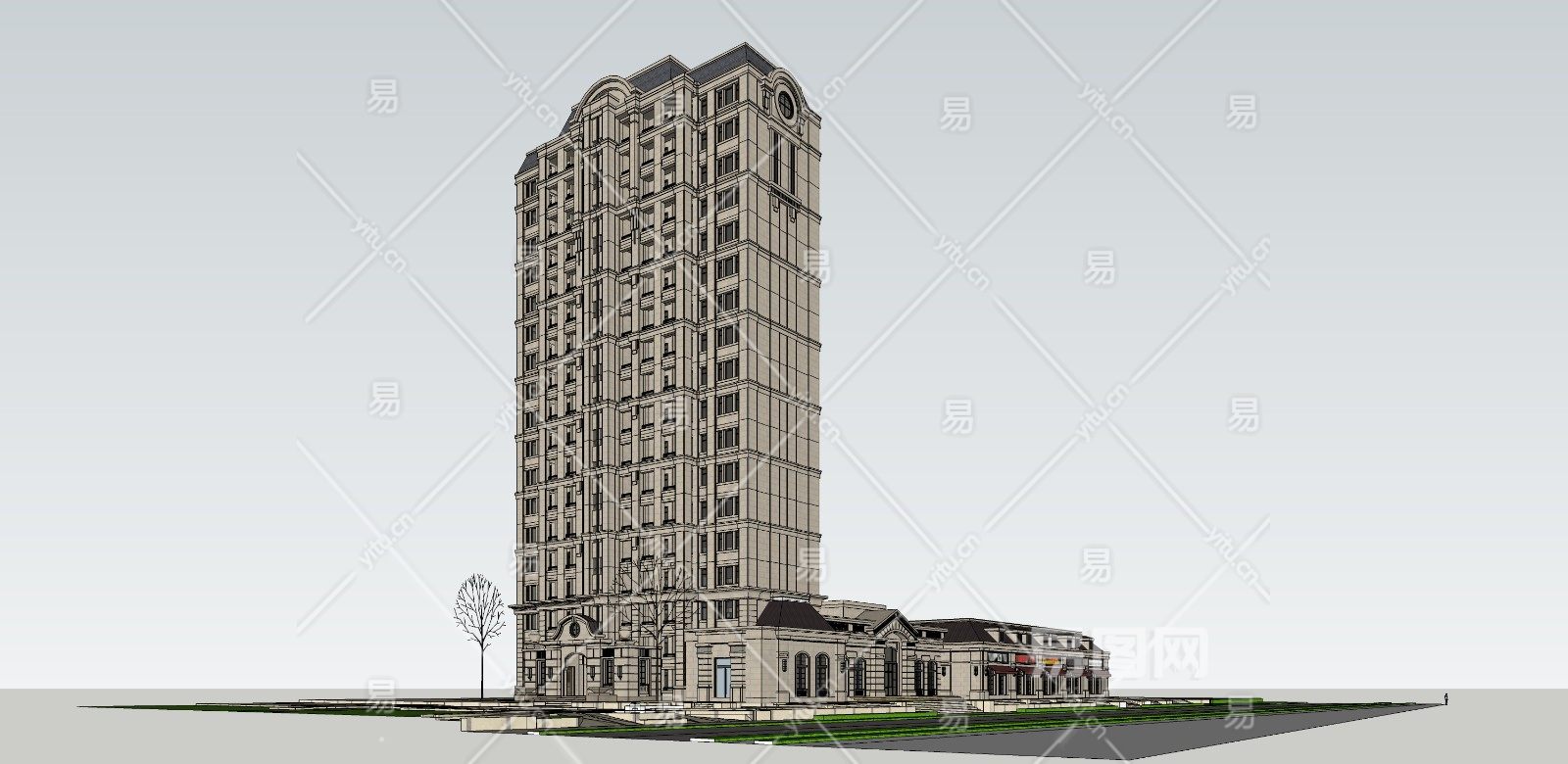当前的位置:首页 > sketchup > sketchup模型 > 建筑 > 商业综合 > 欧式高层住宅公寓商务会所沿街商业