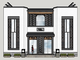 411新中式风格商业建筑,商业街门面,新中式商业单体建筑su草图模型下载