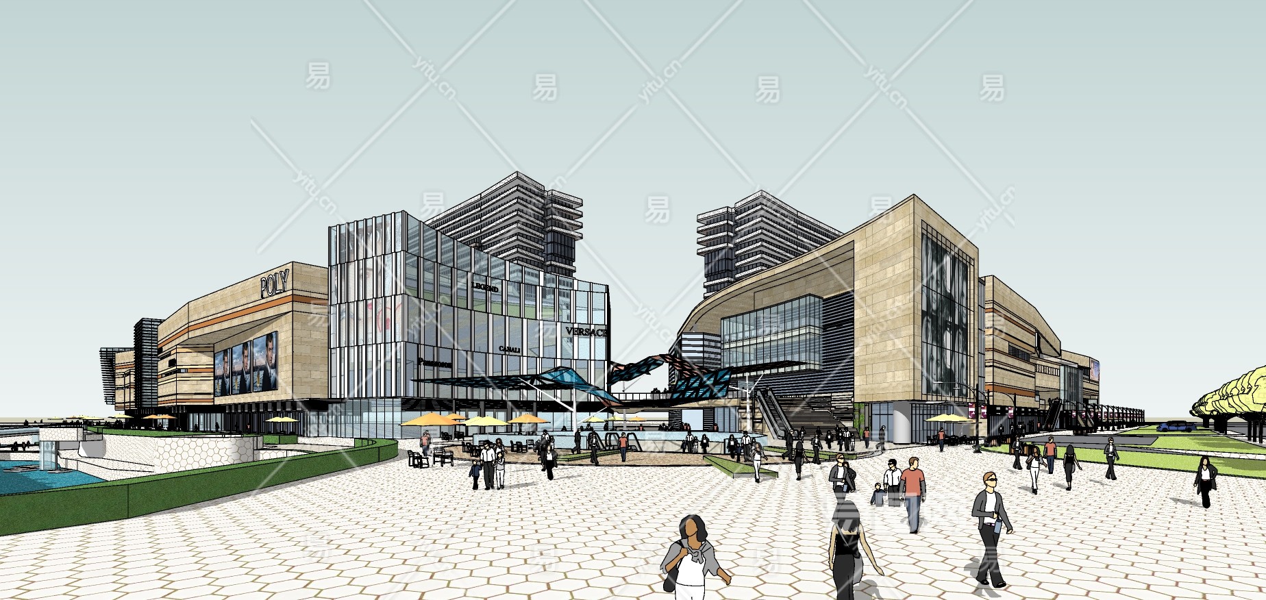 344广东江门市保利国际广场,保利商业综合体,商业购物广场,商业街区,商业街,步行街,办公写字楼裙su草图模型下载