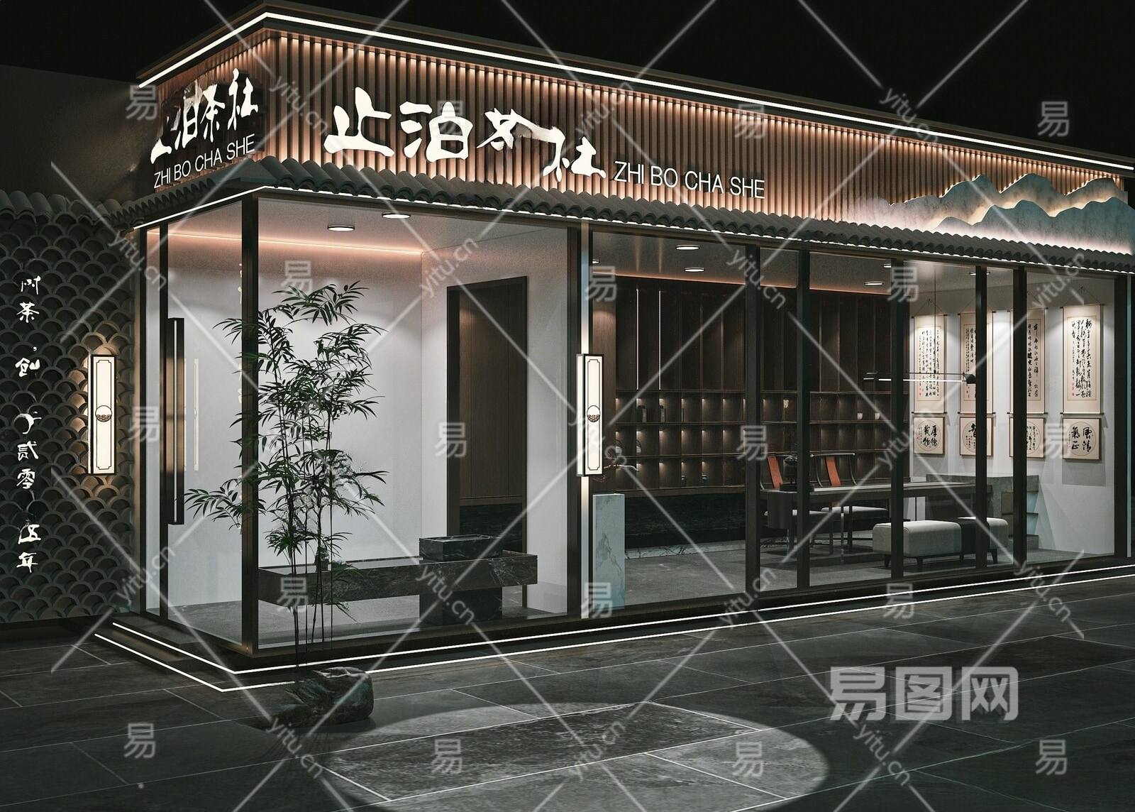 新中式门头门面 茶馆门头 茶楼大门 入口 外观 商业建筑 店铺门头 餐饮