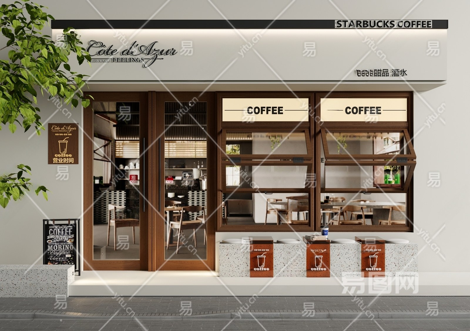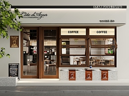 现代咖啡厅门头门面 折叠窗 亚克力桌椅 平开门 餐饮
