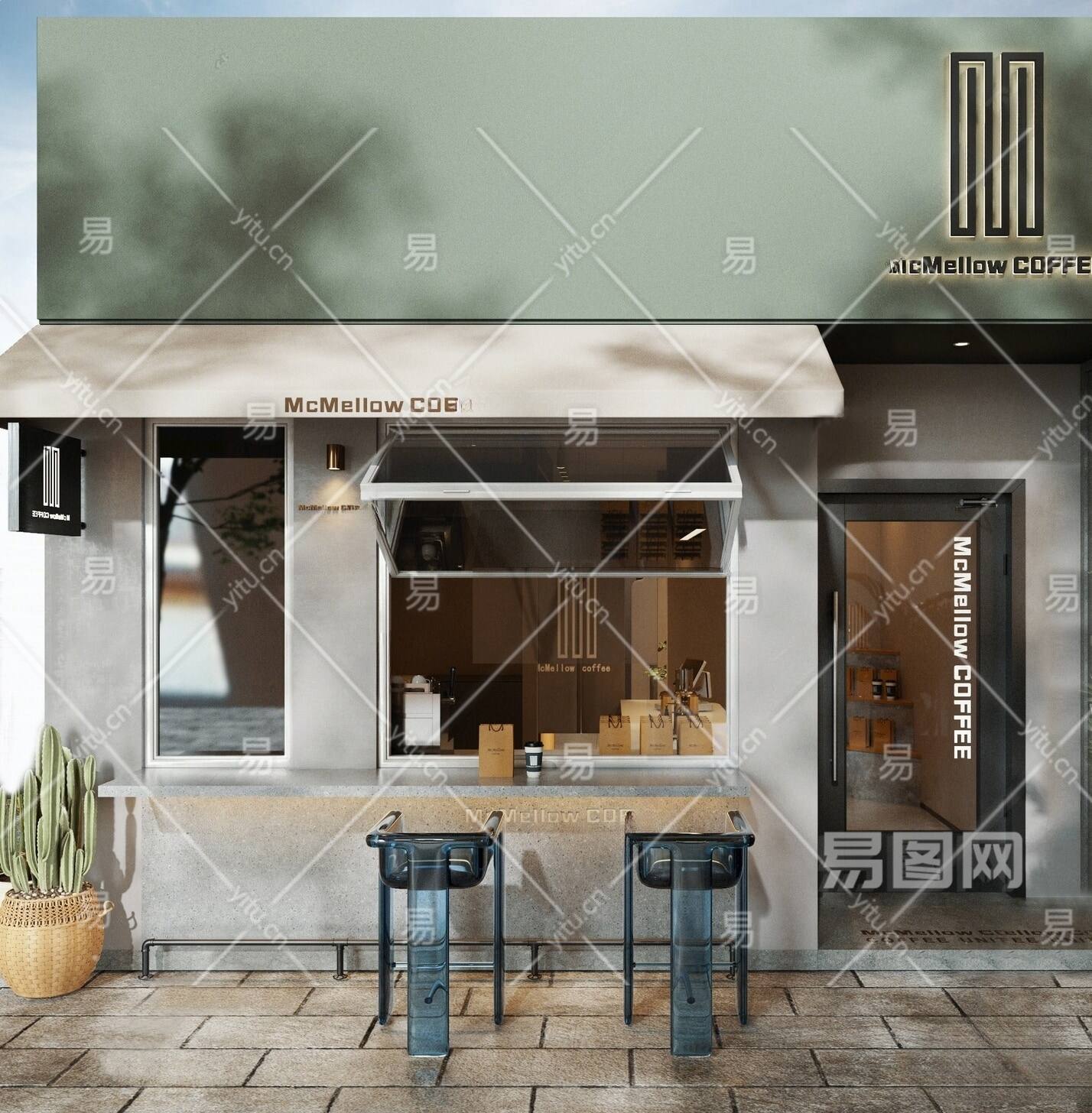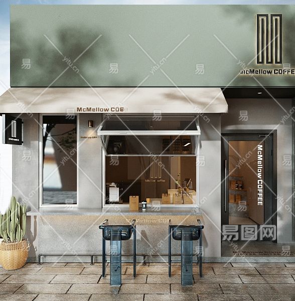 现代咖啡店门头门面 餐饮