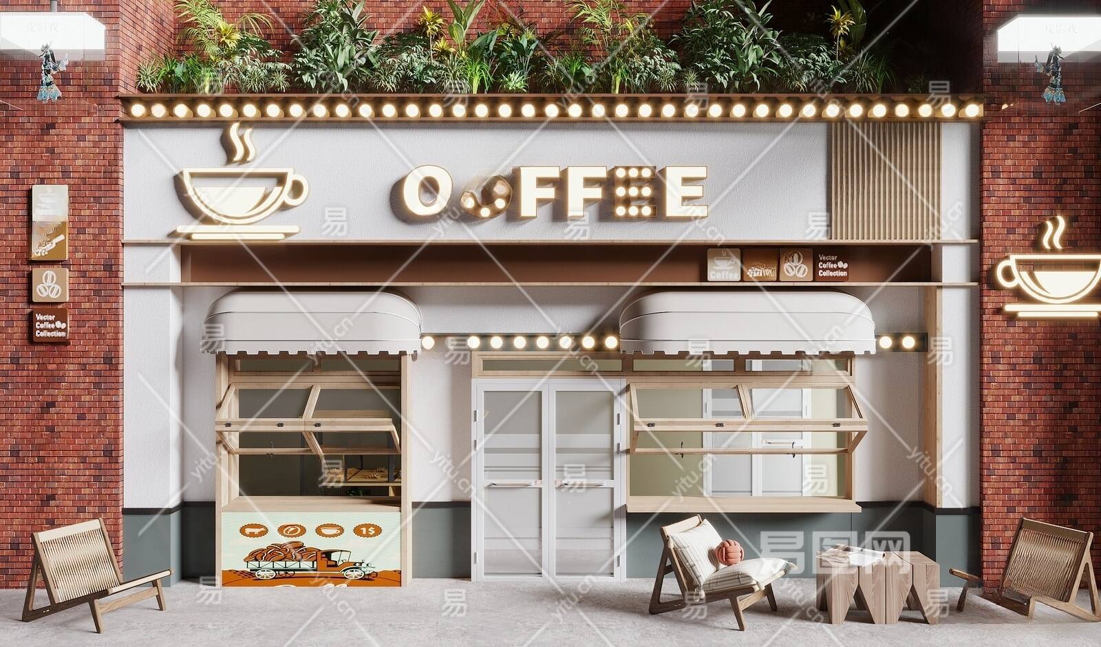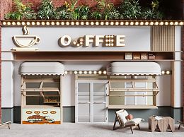 现代咖啡店门头门面 户外桌椅 折叠窗 商铺门 餐饮