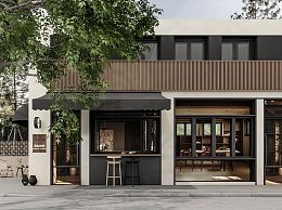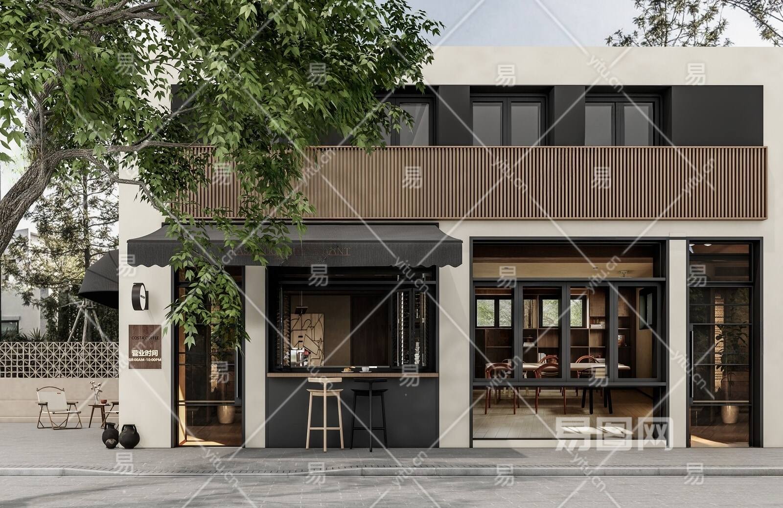 现代咖啡店门头门面 户外桌椅 折叠窗 遮阳棚 店招 户外椅 餐饮