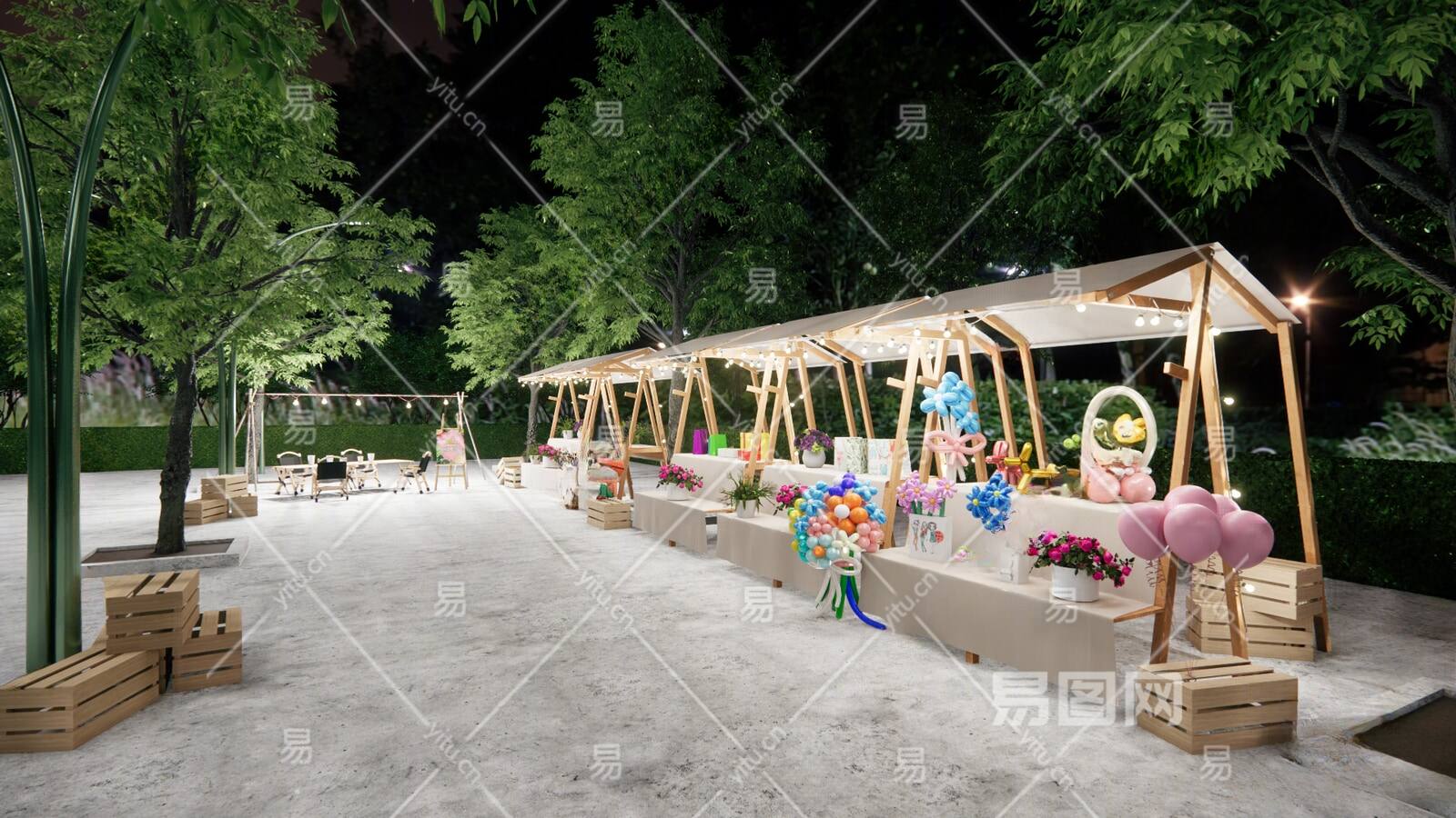 现代夜市集市摊位