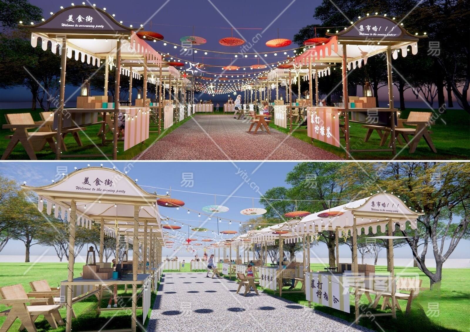 现代户外商业摊位 油纸伞 星星灯 氛围灯 LED彩灯 小卖部 美食街