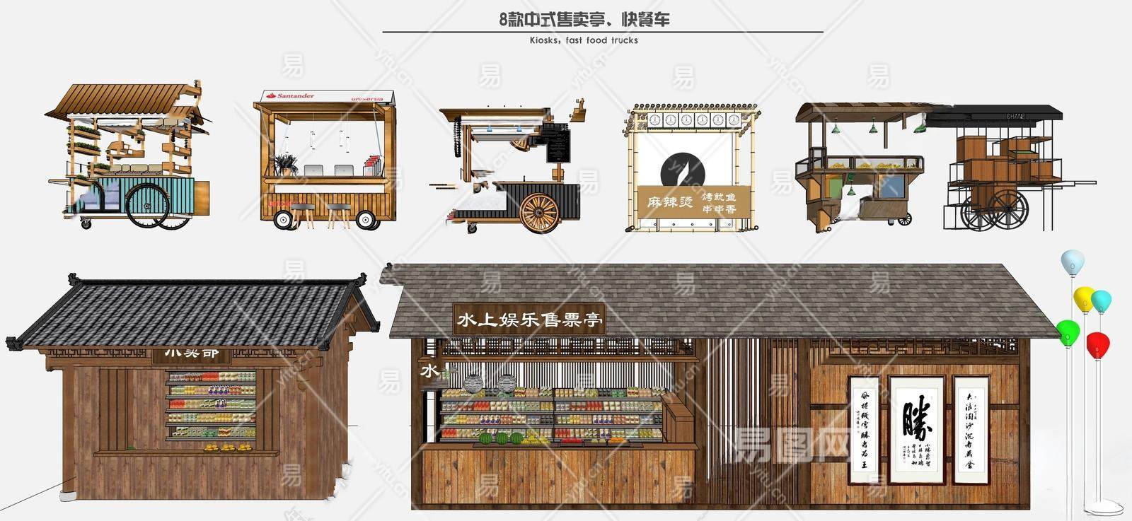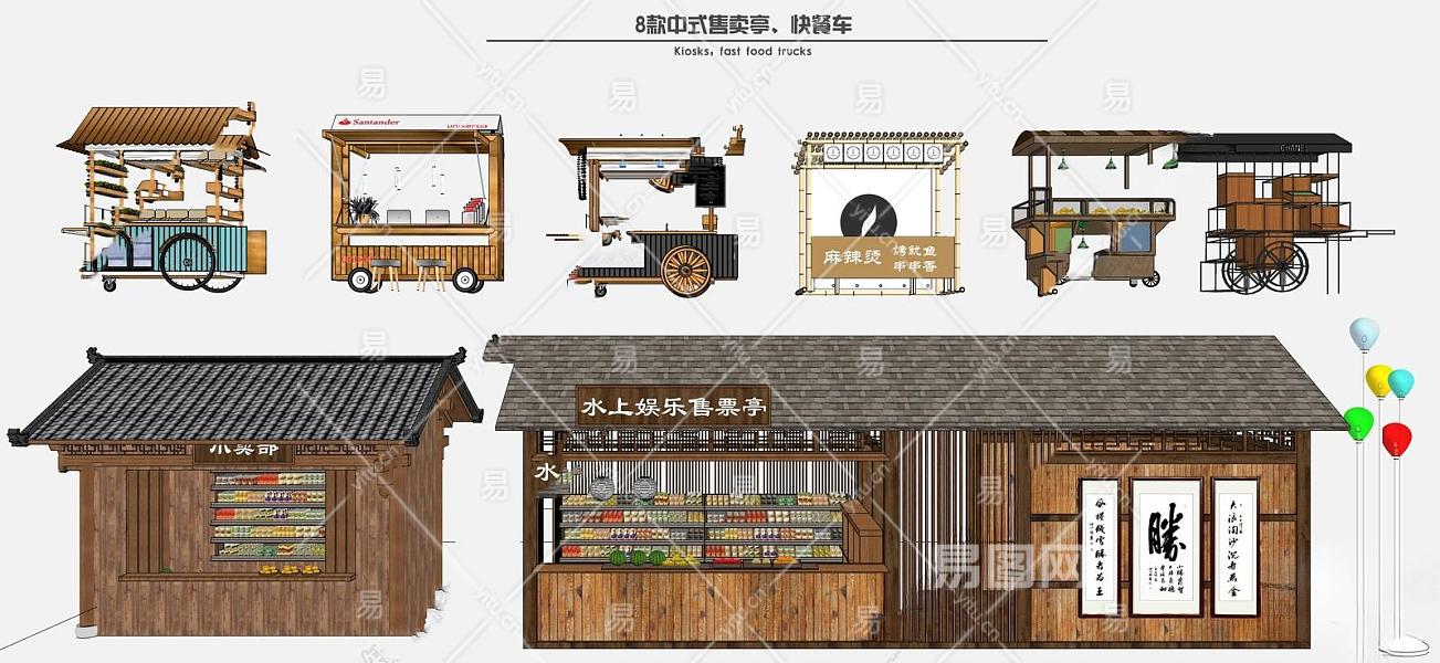 中式售卖亭 小卖部 快餐车 售卖车 售货车 摊位