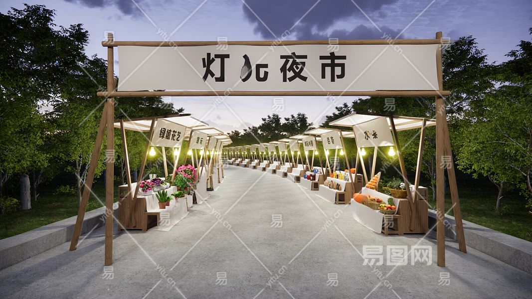 现代夜市集市摊位