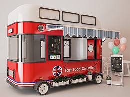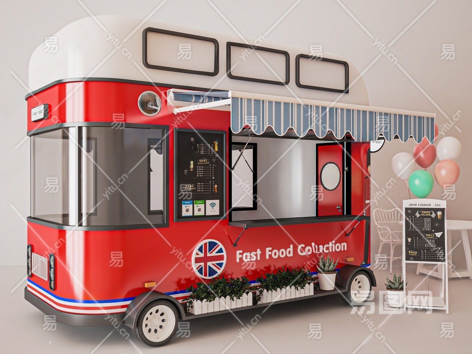现代快餐车 奶茶店 售货车 餐桌椅 贩卖车 餐车