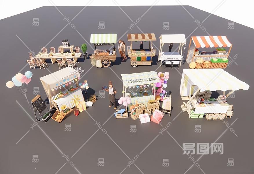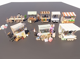 现代推车 摊位 售货摊 售货亭 小吃摊 奶茶亭 水果摊 售卖亭