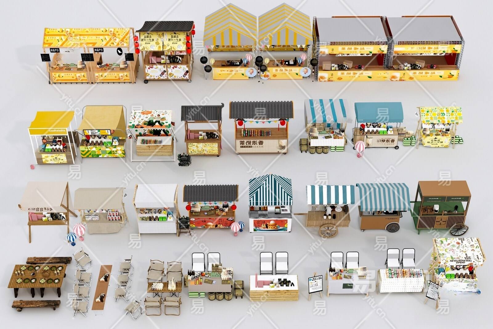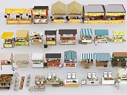 现代集市摊位 小吃摊 售货亭 夜市摊 小吃街 商业街 美食街 小卖铺